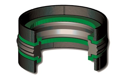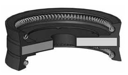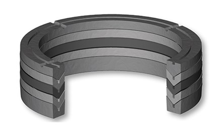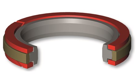 PDG piston seal, Five-element double-acting piston seal with guide ring.