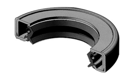 Single-lip seal. The exterior is finished in sheet metal and reinforced. Designed to withstand temperatures, heavy loads and dirtier environments, and facilitate assembly.