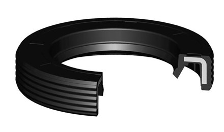 Shutter-type springless single-lip seal with ribbed outer lip. Specifically designed to protect against external contamination. The outer ribbing facilitates assembly and absorbs temperature expansion.